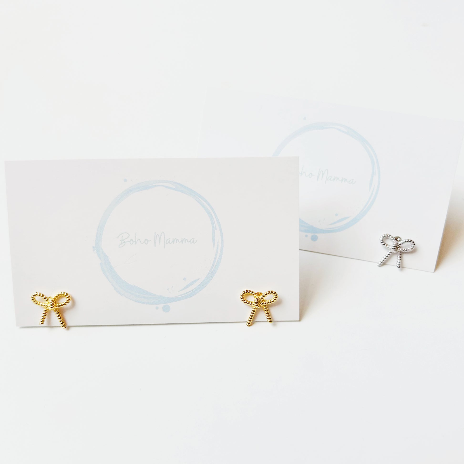 Elevate your accessory game with our Dainty Bow Mini Studs, the perfect blend of elegance and charm. These delicate earrings feature a sweet bow design, adding a touch of whimsy to any outfit. Available in both stunning gold and classic silver, these studs are versatile enough to complement any style, from casual daywear to chic evening looks.