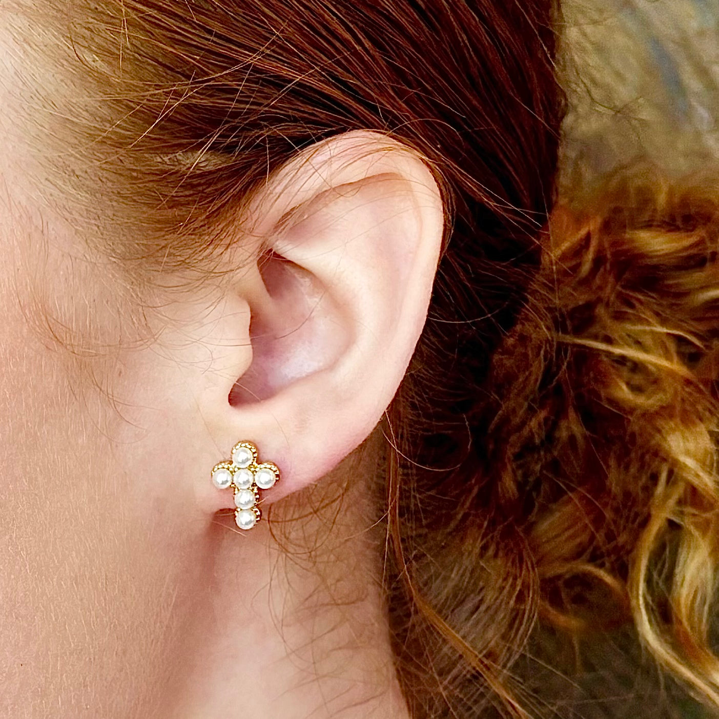 Crafted with care and intention, each stud is a reminder of grace, strength, and serenity. Whether given as a meaningful gift or worn as a personal symbol, the Holy Pearl Cross Studs offer a refined expression of devotion and style.