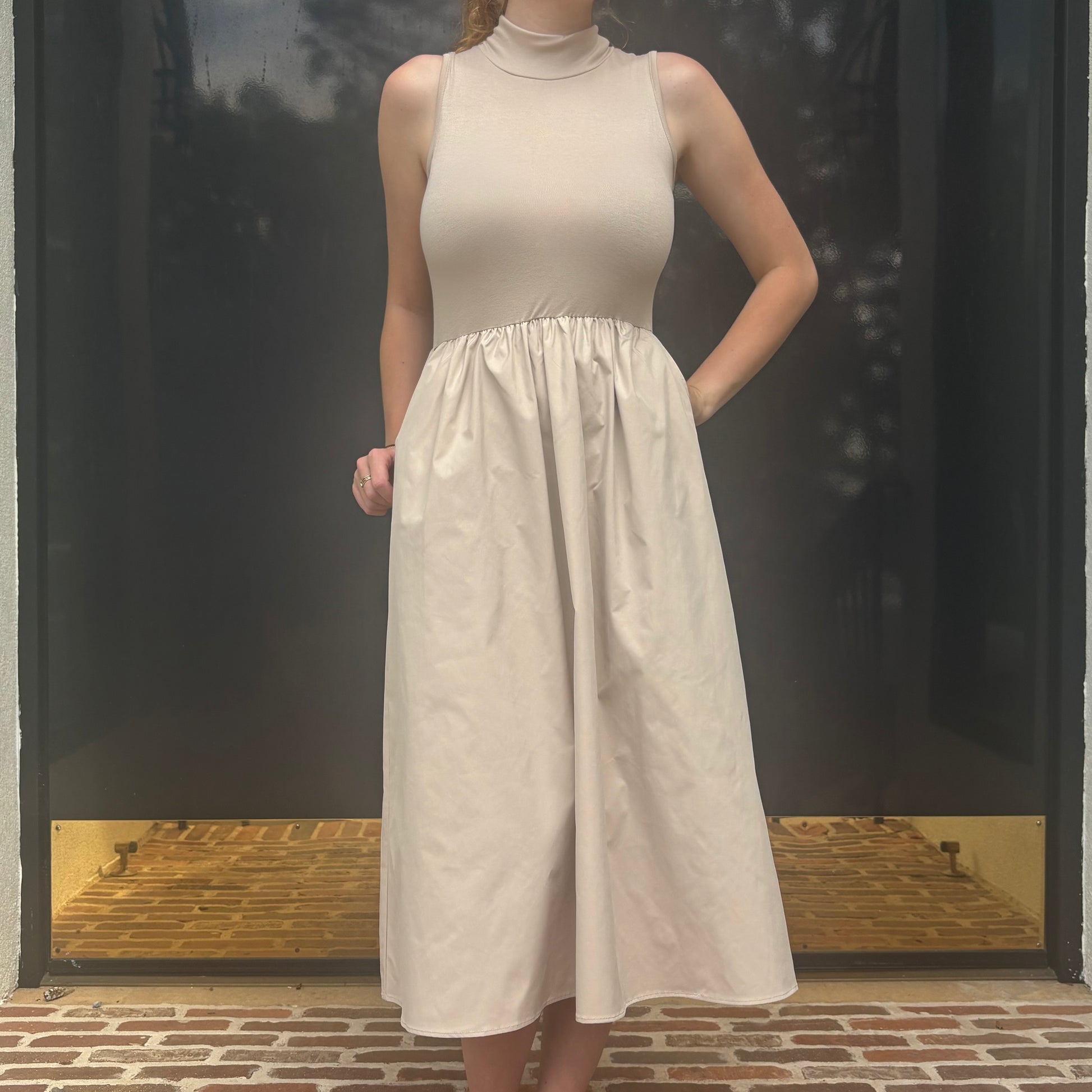 A minimalist dream with a seasonal twist — The Soft Structure Dress is your go-to for effortless layering and crisp, cozy days. Designed with clean lines and a gently tailored silhouette, this sleeveless turtleneck dress strikes the perfect balance between soft comfort and modern structure.